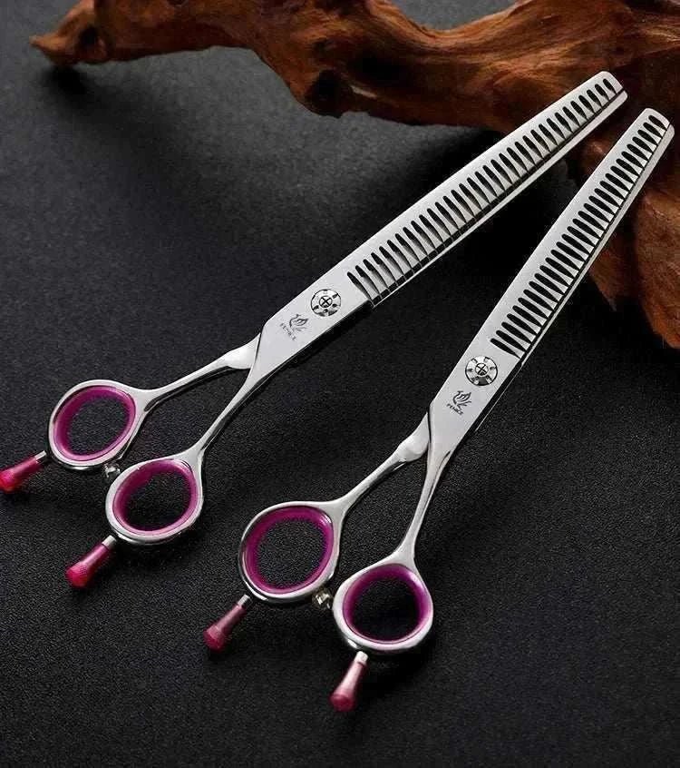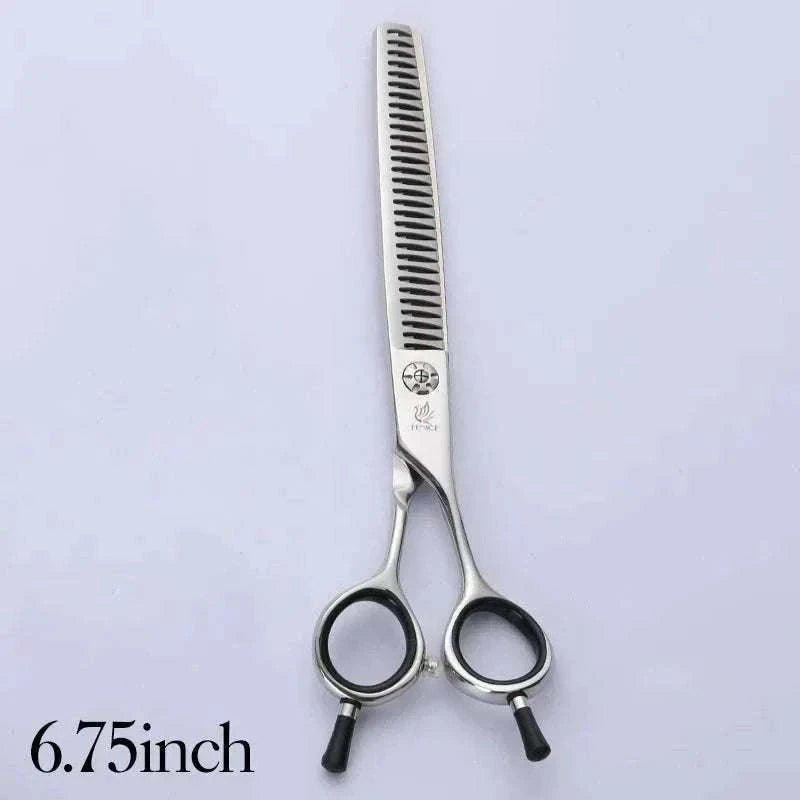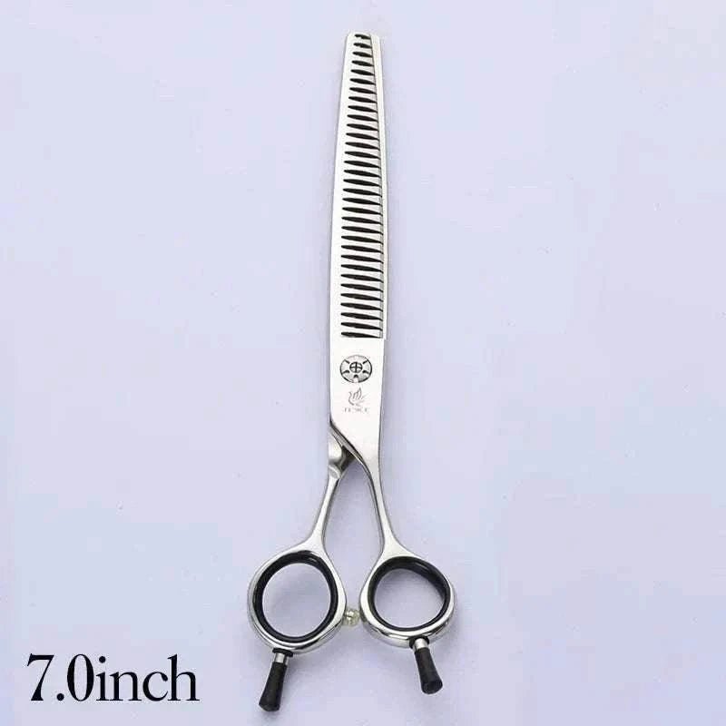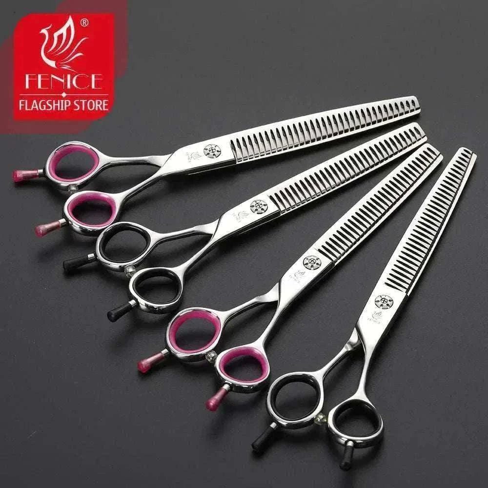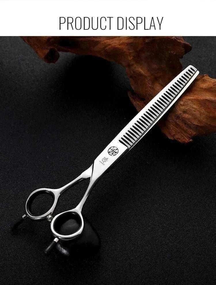 Give your pet a professional grooming treatment with the Fenice Thinning Grooming Scissors . Made from Japanese JP 440C steel , they deliver a precise, long-lasting, and effortless cut, ideal for thinning and lightening the coat of dogs and cats. Thanks to their ergonomic design , these professional-quality scissors ensure comfort and control, even during the longest sessions.