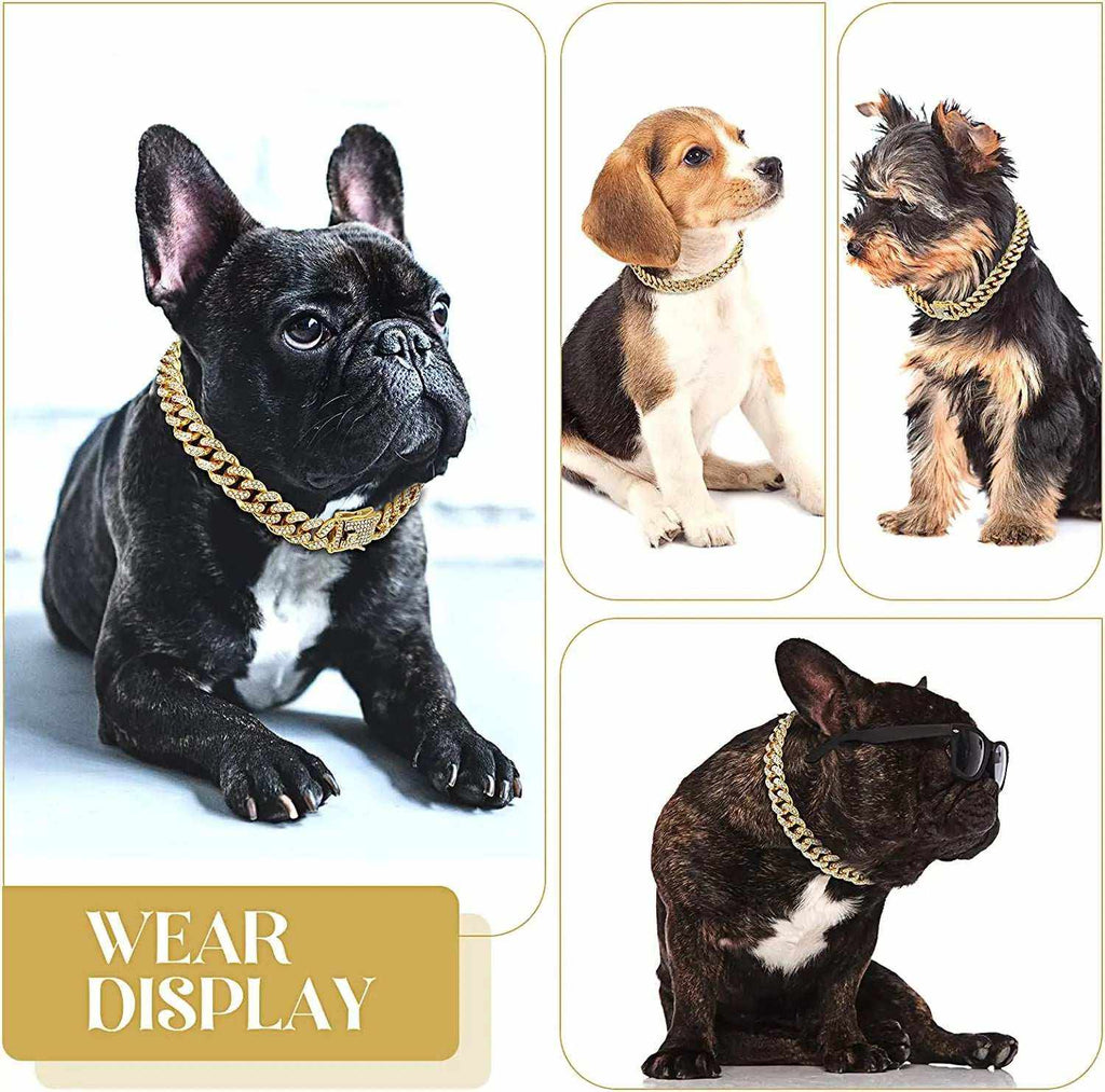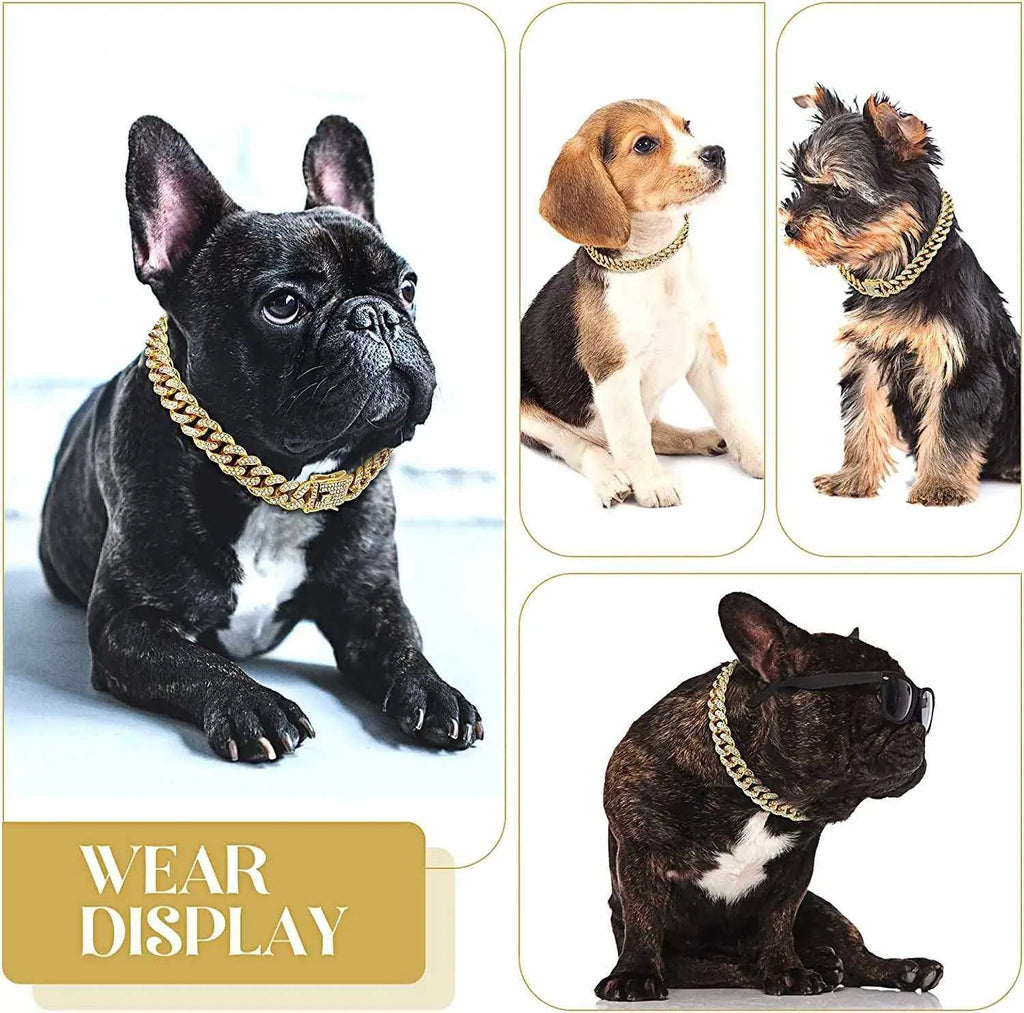 Treat your feline friend to a luxurious and striking gold Cuban collar . Crafted from gleaming metal with sparkling rhinestones , this piece is perfect for special occasions , cosplay photos , or simply adding a touch of everyday glamour .