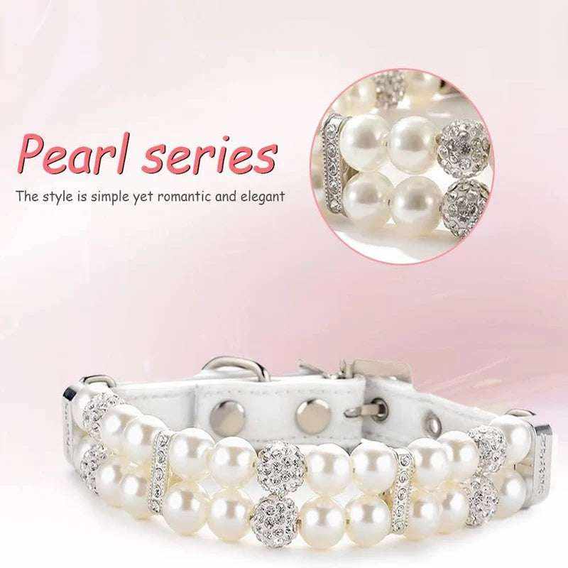 Give your companion a chic and refined look with this luxurious PU leather collar and leash set , adorned with sparkling pearls and crystals. Perfect for elegant walks, photoshoots, or simply for everyday wear.