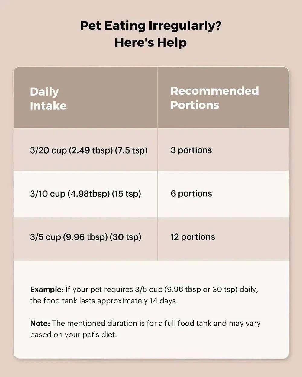 - ✓ Plan your pet's meals with appropriate portions.