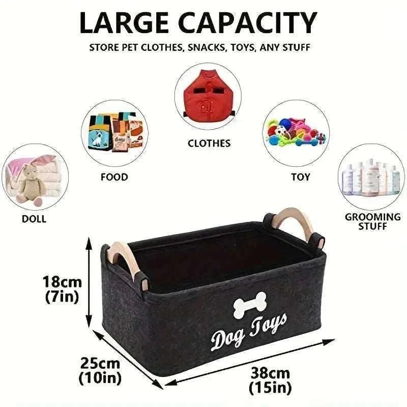 - ✓ Chic and practical felt storage basket for pet toys.